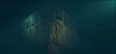 据说,剧组共报废了200多辆车。 熏疼! 08《泰坦尼克号》 泰坦尼克的残骸 影片前面放出了泰坦尼克的残骸影像。