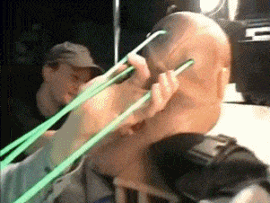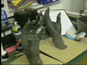 那么这个场景要怎么实拍呢! 男演员的胸腔部分是用模型制作的。 异形则是用金属做成,可以撑破胸腔模型。