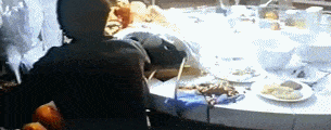 一顿操作帅哭了多少观众~ 这可不是特效哦,虽然看起来非常像! 拍摄前,这些食物底端都被涂抹了胶水。 即便是这样,也是整整拍了150多遍才过。 所以片中两位演员的惊讶大概不是演出来的~