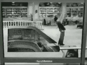 那个年代,自然不存在特效这种东西。 但类似图上的惊险场面要怎么拍呢? 实际是利用人眼的错觉才完成拍摄的。