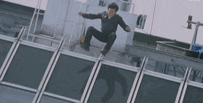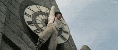 成龙大哥不是第一次这么拼了。 《A计划》里的钟楼片段。