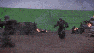拍摄时,异形是用线缆控制,打开开关就可以动。 70年代的作品,能做到这样已经非常赞了! 04《明日边缘》 爆炸等场面 当年一直以为《明日边缘》是一部大制作的特效电影! 这场面,这效果。