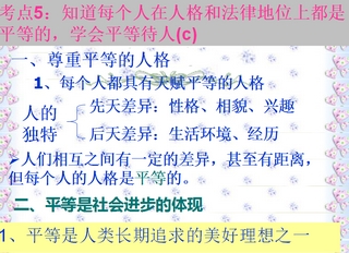 5.知道每个人在人格和法律地位上都是平等的,学会平等待人 c