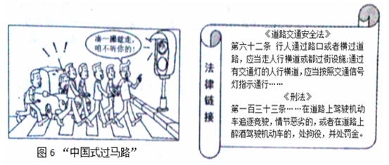 (1)请你按照“指出违法事实—判断违法性质—找出法律依据”的思路,对“中国式过马路”现象进行分析,完成下表:(6分)
