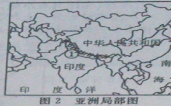 12.中印两国山水相连。图2中位于两国边境处的山脉①指的是