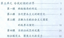 九年级 历史与社会 全册 第一单元 20世纪初的世界与中国 | 第一课 世界的格局与第一次世界大战 | 第二课 中国的时局与辛亥革命 | 第三课 悄然转变中的社会生活 | 第二单元 开辟新的发展道路 | 第一课 第一个社会主义国家的建立和发展 | 第二课 民族民主运动的高涨 | 第三课 美国的资本主义改革 | 第四课 中国新民主主义革命的开始 | 第五课 开辟革命新道路的艰难历程 | 第三单元 中国抗日战争与世界反法西斯战争 | 第一课 中国抗日战争 | 第二课 第二次世界大战的爆发与扩大 | 第三课 世界反法西斯战争的转折与胜利 | 第四单元 中国革命的胜利 | 第一课 两种命运的决战 | 第二课 新中国的诞生 | 第五单元冷战时期的世界 | 第一课 两极格局的形成 | 第二课 当代资本主义的新变化 | 第三课 苏联与东欧社会主义国家的改革与演变 | 第四课 亚非拉地区的发展 | 第六单元 新中国的建设与改革 | 第一课 社会主义建设的起步与探索 | 第二课 改革开放历史新时期 | 第三课 民族区域自治与民族团结 | 第四课 “一国两制”与统一大业 | 第五课 独立自主的新中国外交 | 第七单元 跨世纪的中国与世界 | 第一课 历史性跨越:全面建设小康社会的中国 | 第二课 经济全球化 | 第三课 世界多极化趋势 | 第四课 当代世界科技革命与社会生活 | 第八单元 共同面对前所未有的挑战 | 第一课 不断变化的人口 | 第二课 日益严峻的资源问题 | 第三课 共同关注的环境问题 | 第四课 发展的选择 |