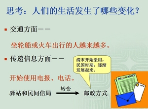 重点:从近代中国社会生活的变化感受人类文明发展的趋势,感受科学技术给社会生活带来的影响。