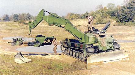 MAN公司长达26米的“鬣蜥”机动桥梁系统,最初投放市场时是装在8×8机动底盘上的。最近,它被安装在了多种坦克底盘上,例如“豹”l和Ml“艾布拉姆斯”坦克。架桥时,70吨军用载重级双节桥梁从坦克前面水平伸出,乘员始终在坦克的装甲防护下作业。该桥梁完全打开后长达26米,可横跨24米宽的壕沟。桥体用铝制材料制成,重10.9吨。在车体前部,为施放平台装配有一个起稳定作用的驻锄,以架桥时支撑车体。对于基于“豹”l底盘的装甲架桥车,其标准装备有三防装备、涉水装备以及装在车底部的抽水机。如果需要,可以安装附加反应装甲和防碎片内衬。使用附加装备后,“鬣蜥”桥梁系统也可作为浮桥使用。乘员2人,战斗全重50吨,最大速度60千米/小时,最大行程550千米。 其他车辆 装甲工程车还有许多功能细化的分类,比如推土车、运输车、侦察车等。这些车辆虽然没有抢救车和架桥车数量那么多,但是仍然扮演着战场“救火兵”的角色,每每出现在最危险而又最需要它们的地方。下面就是几种有代表性的装甲车辆。 EPG装甲工程车