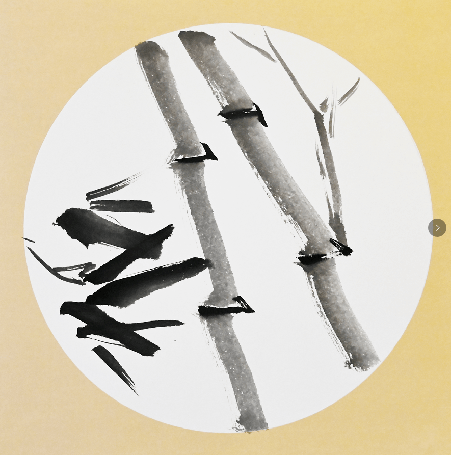 画雨竹枝略弯,叶下垂偏一边。“个”字“介”字相互破,各种分字画其间。行笔提按需求稳,出锋必须要果断。有主有宾分成组,整体还需连成片。密处求疏疏处密,最忌堆砌和散乱。画竹关键在组合,功夫都在笔墨间。
