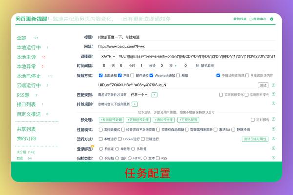 相信很多小伙伴们都有过这样的经历:为了抢票、抢购物优惠、或者追踪一些热门资讯,不得不一遍又一遍地刷新网页,眼睛都要瞪出来了!但是,有了网页更新提醒软件,这种痛苦就可以一扫而空了! 插播:网页内容变化监控 @小狐狸344465718 首先,让我们来感受一下这个软件的魅力。我曾经亲自体验过全网的类似软件和插件,但是毫不夸张地说,网页更新提醒是我用过的最好用的一款!它的功能非常强大,几乎能满足你所有的需求。 一、网页更新提醒:是什么? 网页更新提醒是一款方便的浏览器插件,它可以监控和跟踪网页内容的更新。它提供多种通知方式,包括浏览器通知、电子邮件、Webhook等。 你可以方便地选择你感兴趣的网页区域进行监控,并设置过滤规则以获取所选内容的变化。 此外,它还支持多种功能,如配置监控时间段、共享监控任务、导入/导出规则等。无论是个人用户还是企业用户,网页更新提醒都能帮助你及时获取网页更新的信息,让你时刻掌握最新动态。 二、它的使用场景: 热点追踪:追踪最新的热点话题、热搜关键词和热评内容,及时获取热门信息。 商品监测:监测商品的上新情况、价格变动和库存状态,帮助你抢购心仪的商品。 作品追踪:追踪作品的发布情况、评论和点赞数,了解最新的创作动态。 招标监测:监测招标信息、投标情况、拍卖和竞价活动,帮助你参与相关业务。 招聘监测:追踪招聘信息、求职动态和应聘进展,助你找到理想的工作机会。 公告监测:监测公告、通知和活动信息,及时了解重要的公共消息。 新闻监测:追踪新闻、博客和论坛文章,获取最新的社会动态和意见交流。 流程监测:监测流程进度和状态变化,帮助你掌握项目或任务的进展情况。 自动化测试:自动化执行测试任务,抢单或收集数据,提高工作效率和准确性。 三、主要功能特征: 方便选择感兴趣的网页区域:您可以轻松选择您感兴趣的网页区域,并监控其更新情况。 多种通知方式:网页更新提醒支持多种通知方式,如邮件、消息推送等,让您随时随地接收到最新的更新通知。 直观的差异比较功能:工具提供直观的差异比较功能,让您一目了然地查看网页的变化,不再错过任何细微的调整或更新。 筛选规则设置:您可以配置筛选规则,根据自己的需求过滤所选内容的变化,只关注您真正关心的信息。 灵活的监控时间设置:您可以根据需要设置监控时间段,确保在特定时间范围内获取到更新通知。 云端监控支持:网页更新提醒支持云端监控,您可以轻松在多个设备上同步并管理您的监控任务。 脚本预处理功能:工具提供脚本预处理功能,可以模拟操作和组织数据,让您更加灵活地处理网页更新。 四、操作指南:通过这个教程你可以掌握如何使用网页更新提醒 步骤1:安装插件。前往Chrome Web Store并安装网页更新提醒插件。 步骤2:选择感兴趣的区域。在您希望追踪更新的网页上,按下Ctrl + Shift + 1(或相应的快捷键),开始选择您感兴趣的区域。您可以使用鼠标拖动来选择区域。 步骤3:配置通知方式。点击插件图标,在设置中选择您喜欢的通知方式,可以是邮件、消息推送等。确保您已经提供了正确的联系方式。 步骤4:设置筛选规则。根据您的需求,点击设置中的筛选规则选项,配置适当的规则来过滤所选内容的变化。这样,您只会收到您真正关心的更新通知。 步骤5:设置监控时间段。在设置中,根据您的偏好设置监控时间段。您可以选择每天的特定时间范围,以确保在最佳时间接收到更新通知。 步骤6:享受更新提醒。完成上述设置后,您只需坐等网页更新提醒为您发送通知。无论是重要的新闻、商品促销还是其他网页更新,您将第一时间了解到。 通过按照以上步骤,您可以轻松设置和使用网页更新提醒,确保不再错过任何有趣的网页更新。 五、支持平台: 网页更新提醒目前支持Chrome浏览器和基于Kiwi Browser的Android设备。 六、定价: 网页更新提醒的免费版已经非常给力了,大部分用户完全可以满足需求,不需要花一分钱! 当然,如果你经济条件允许,购买VIP套餐将带来更高的权益。这不仅能让你享受到更多的功能和特权,还能支持作者更好地完善软件,提高系统稳定性,满足更多用户的需求。 结语: 网页更新提醒通过监控网页的变化来实现其功能。当所选内容发生变化时,工具会通过您配置的通知方式将更新信息发送给您。网页更新提醒是一款功能强大、方便实用的工具,它可以帮助您追踪网页的更新,并通过多种通知方式及时将更新信息传达给您。 无论您是需要关注新闻资讯、商品促销还是其他重要内容的更新,网页更新提醒都能够满足您的需求。立即安装并体验这款实用工具,让您的网页浏览更加高效便捷。 附:edge浏览器插件 谷歌浏览器插件Distill Web Monitor 打开浏览器扩展管理中心(在浏览器地址栏输入如下地址): Chrome浏览器:chrome://extensions Edge浏览器:edge://extensions 360安全浏览器:se://extensions 360极速浏览器:chrome://extensions QQ浏览:qqbrowser://extensions 然后,需要勾选页面右上角(Edge浏览器左侧)的「开发者模式」(默认是关闭的) 注意:请认准图上这个ID,这是插件的良民证,如果ID跟应用商定不一致请拒绝安装