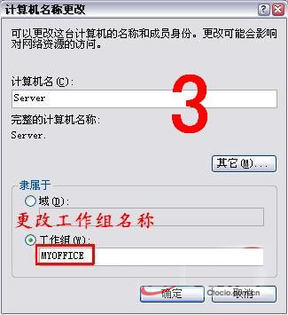 4.“网上邻居失踪了!” 故障现象:打开“网上邻居”后,只能看到部分计算机,无法查看到局域网中的某些计算机,甚至看不到自己的计算机。 应对措施:在局域网畅通的前提下,无论是不能查看本机还是网络中的其他计算机,都是由于无法查看到的计算机中没有正确地安装“文件和打印共享服务”所致。 安装“文件和打印共享服务”时,可在本地连接属性窗口中点击“安装”按钮之后选择“服务”一项,并且在“网络服务”窗口中选取“Microsoft网络的文件与打印机共享”。完成后在“网络”属性窗口中选择“文件及打印共享”,接着勾选“允许其他用户访问我的文件”复选框即可。安装设置好文件和打印共享服务之后需要重新启动计算机。 另外,如果局域网中的计算机工作组设置出错也可能无法直接在某一个工作组中查看到它。比如大多数计算机的工作组设置为“Myoffice”,但有几台计算机的工作组设置为“Myoffice1”,这样当打开“Myoffice”工作组时就不能查看到“Myoffice1”工作组中的计算机,因此需要统一工作组的名称。在更改工作组名称时可右键点击“我的电脑”选“属性”菜单,在弹出的对话框中选择“计算机名”标签,再点击“更改”按钮输入即可(如图3所示)。