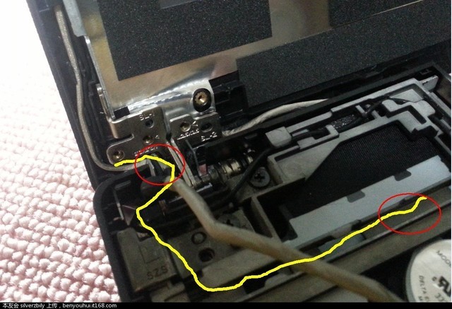 因为新换的高分屏线比原屏线粗了不少,黄线走线时,两个打红圈的位置费了我不少时间。