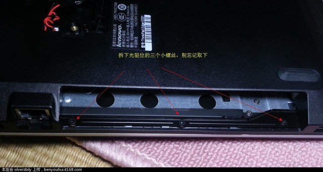 拆下光驱后 标记的螺丝也要拆 三个