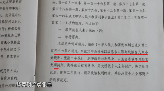 当晚,朱小妹就约林某来自己公寓,吃人嘴软的林某应约前往,而林某的老婆也是知道两人关系的,只是在利益面前妥协罢了。 在公寓里,朱小妹并没有直接毒杀林某,她仍抱有幻想,问林某是否愿意和自己一起偿还债务,被林某再次拒绝。 于是朱小妹拿出一颗里面是安眠药的胶囊让林某服下,吃完两人就睡了。 第二天早上,朱小妹仍不死心,又一次向林某确认资金问题怎么解决,林某依然一口回绝。 此时的朱小妹幻想彻底破灭,她一次性给林某服下了四颗胶囊,里面足足有二十几颗安眠药。 吃完药的林某逐渐失去了脉搏和呼吸。 朱小妹在毒害林某后做了两件事情,一是十分冷静地处理了现场,清洗了两人喝过水的杯子,用林某的手机模仿其口吻回复了他妻子的短信。 二是去与家人告别,再回到案发现场再一次确认林某是否死亡,在确认后她就开始实施自己的自杀计划。 然后就有了酒店工作人员报警的那一幕。 当时朱小妹吞服的安眠药将近40多颗,剂量比林某还多,但是却没有像林某那么快死亡,服毒约12小时后被发现送往医院。 可能冥冥之中,是老天在惩罚朱小妹的愚蠢。 最终,一个亿万富婆以杀人犯和诈骗犯迎来审判,故意杀人罪被判死刑,缓期2年执行,诈骗罪被判无期徒刑。 数罪并罚,法院决定判处朱小妹死刑,缓期2年执行。