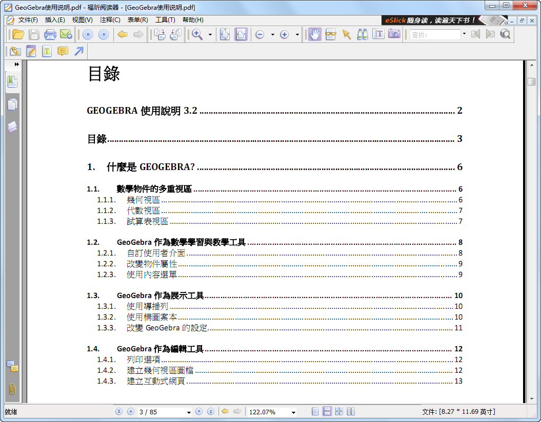 GeoGebra在其它方面的应用 5份PDF格式的使用教程,请安装PDF阅读器如Foxit Reader后阅读