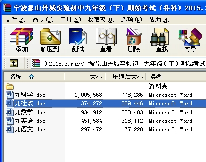 宁波象山丹城实验初中九年级(下)期始考试(各科)2015.3.rar