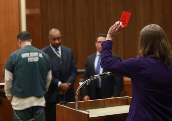 | 图为受害者遗孀在法庭上再次出示红牌去年夏天在美国密歇根州一场足球联赛中发生一起悲剧。当值主裁判竟然被不服判罚的球员一拳打晕,两天后,该名裁判在医院.. (2015-03-21) |