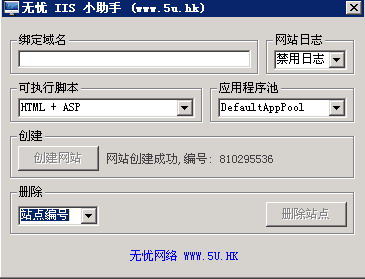 | 绑定域名那你可以一下子绑定多个域名,用英文状态下的逗号做分隔符即可,有些参数都在myIIS.ini里改,主要要改的是index(网站首页文件)webdir(网站存放目录)log(.. (2011-03-02) |