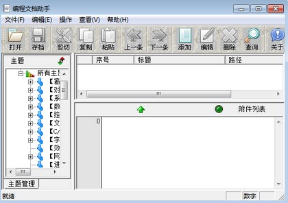 | 编程文档助手主要是对日常编程收集的文档资料的管理;支持附件存储;快速查询;数据库备份、恢复、合并等更能;界面友好;易操作;说明:此注册机为内存注册机,.. (2011-03-02) |
