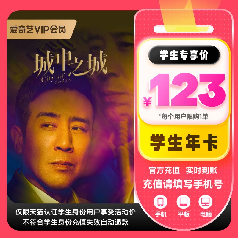 【学生会员】爱奇艺学生vip会员年卡 12个月视频会员不支持电视端